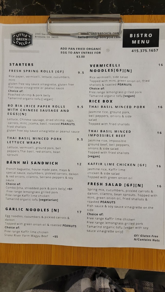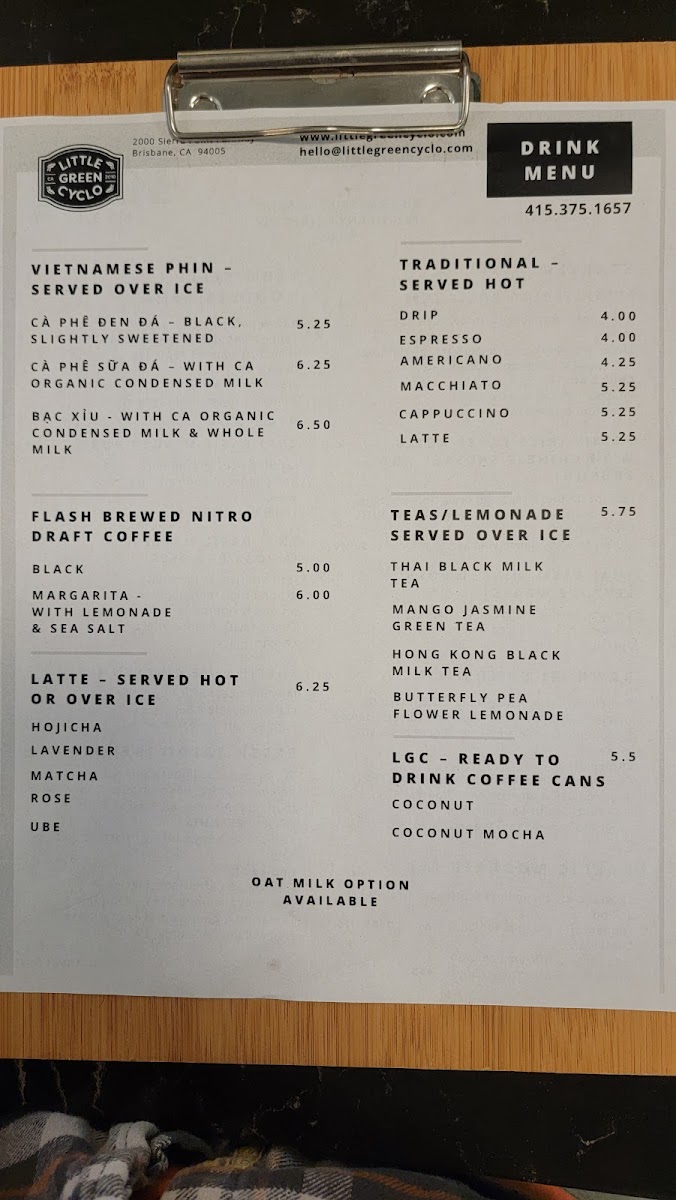 From appetizers like Fresh Springrolls and Thai Basil Minced Pork Lettuce Wraps to classic Vietnamese‑inspired mains such as the Banh Mi sandwich, Little Green Cyclo’s menu offers a vibrant range of choices that balance fresh flavors with comforting familiarity. Bowls include crisp Fresh Salad, hearty Vermicelli Noodles, savory Garlic Noodles, and satisfying Jasmine Rice Box, while a simple Organic Fried Egg makes a flavorful side. For drinks, the café’s ready‑to‑drink selection features Coconut Mocha Vietnamese Coffee and Coconut Vietnamese Coffee cans, complemented by traditional Vietnamese phin brews like Ca Phe Den Da, Ca Phe Sua Da, and Bac XIu. Nitro coffee lovers can enjoy the bold Black Nitro Brew Draft Coffee or the refreshing Margarita - With Lemonade & Sea Salt, and the traditional coffee lineup includes Espresso Americano, Macchiato, Cappuccino, and Latte. Thirst‑quenching teas and lemonades, including Thai Black Milk Tea, Seasonal Jasmine Green Tea, and Butterfly Pea Flower Lemonade, round out a menu that’s both diverse and inviting.