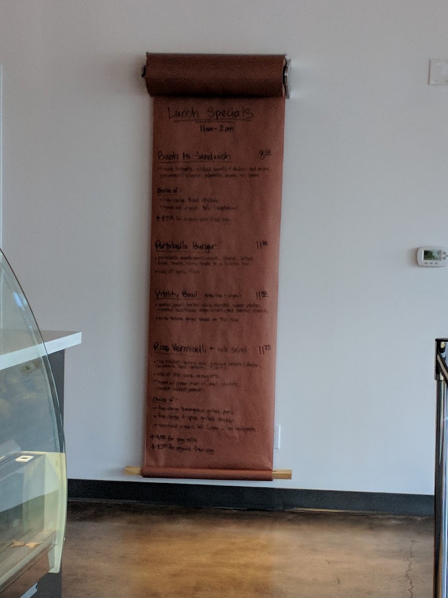 Choice of free range lemongrass roasted pork | tamarind organic tofu (vegan with gf soy sauce vinaigrette) | lettuce, pickled carrots & daikon, cucumbers, cilantro, mint, bean sprouts, fried shallots, green onion oil, roasted crushed peanuts, gf fish sauce vinaigrette.